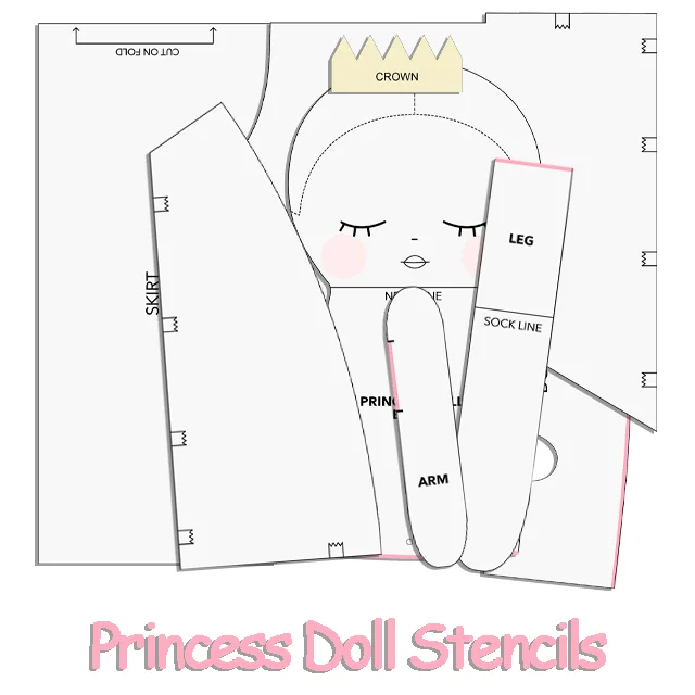 - Digital PDF Pattern: Princess doll sewing pattern with 3 hairstyles, 3 dresses, and 4 face templates.